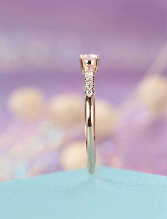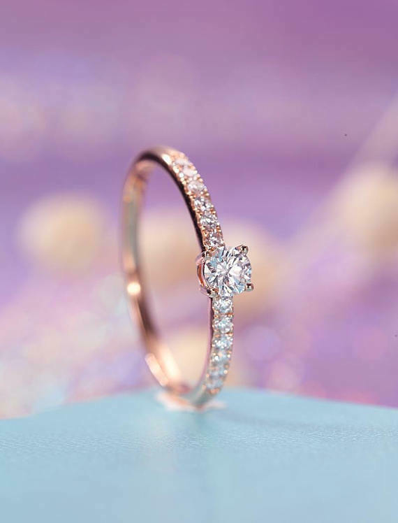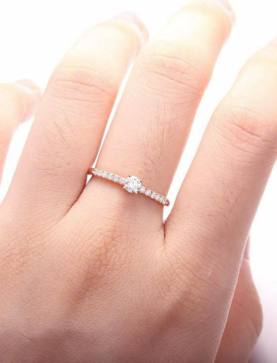 1.2ct Round Cut Diamond Engagement Ring Accent with Solitaire 14k Rose Gold Over
