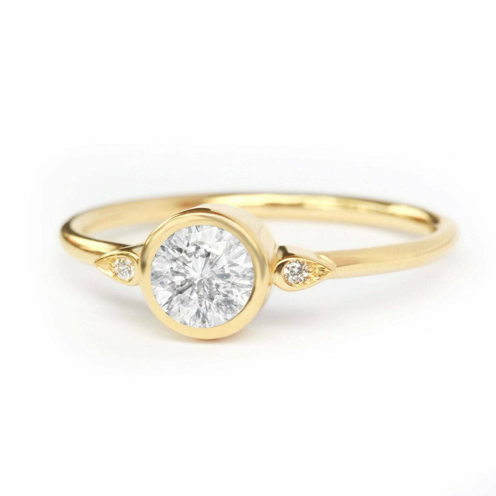 1.2ct Round Cut Diamond Engagement Ring Bezel Set Trilogy 14k Yellow Gold Finish