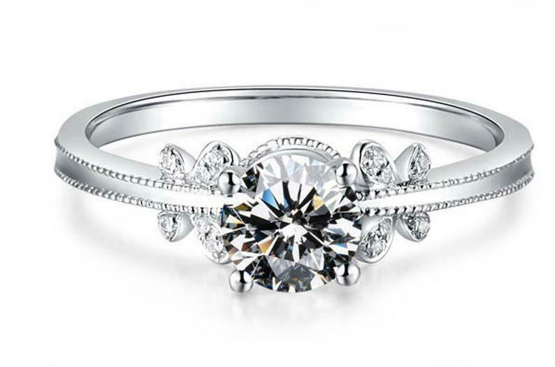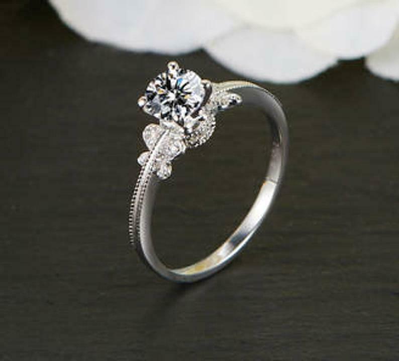 1.2ct Round Cut Diamond Engagement Ring Butterfly Accent 14k White Gold Finish