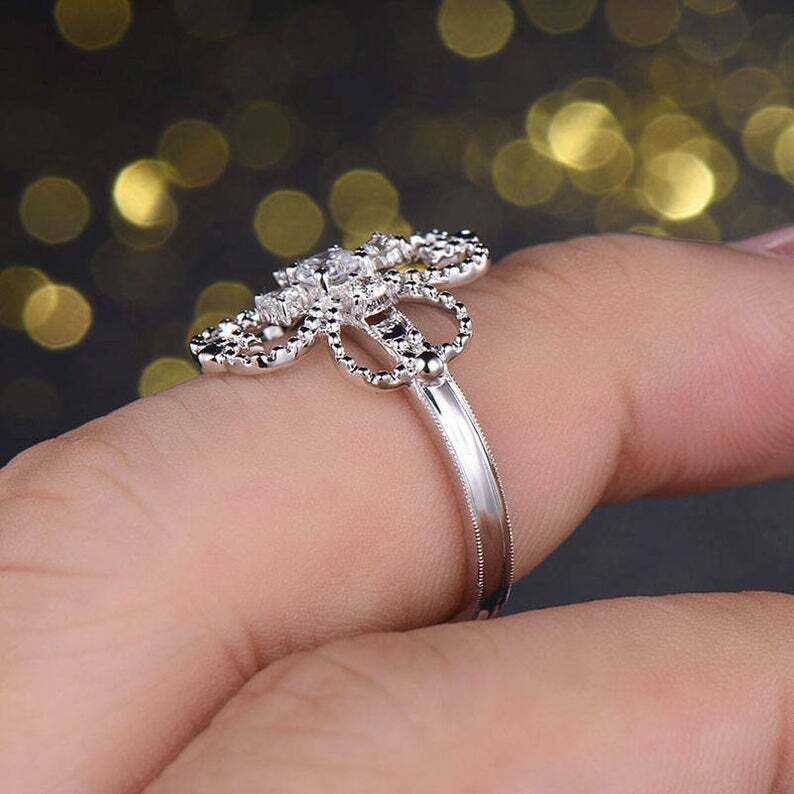 1.2ct Round Cut Diamond Engagement Ring Clover Leaf Fancy 14k White Gold Finish