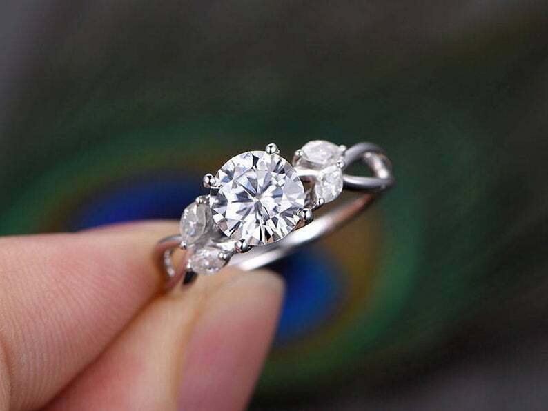 1.2ct Round Cut Diamond Engagement Ring Floral Leaf Design 14k White Gold Finish