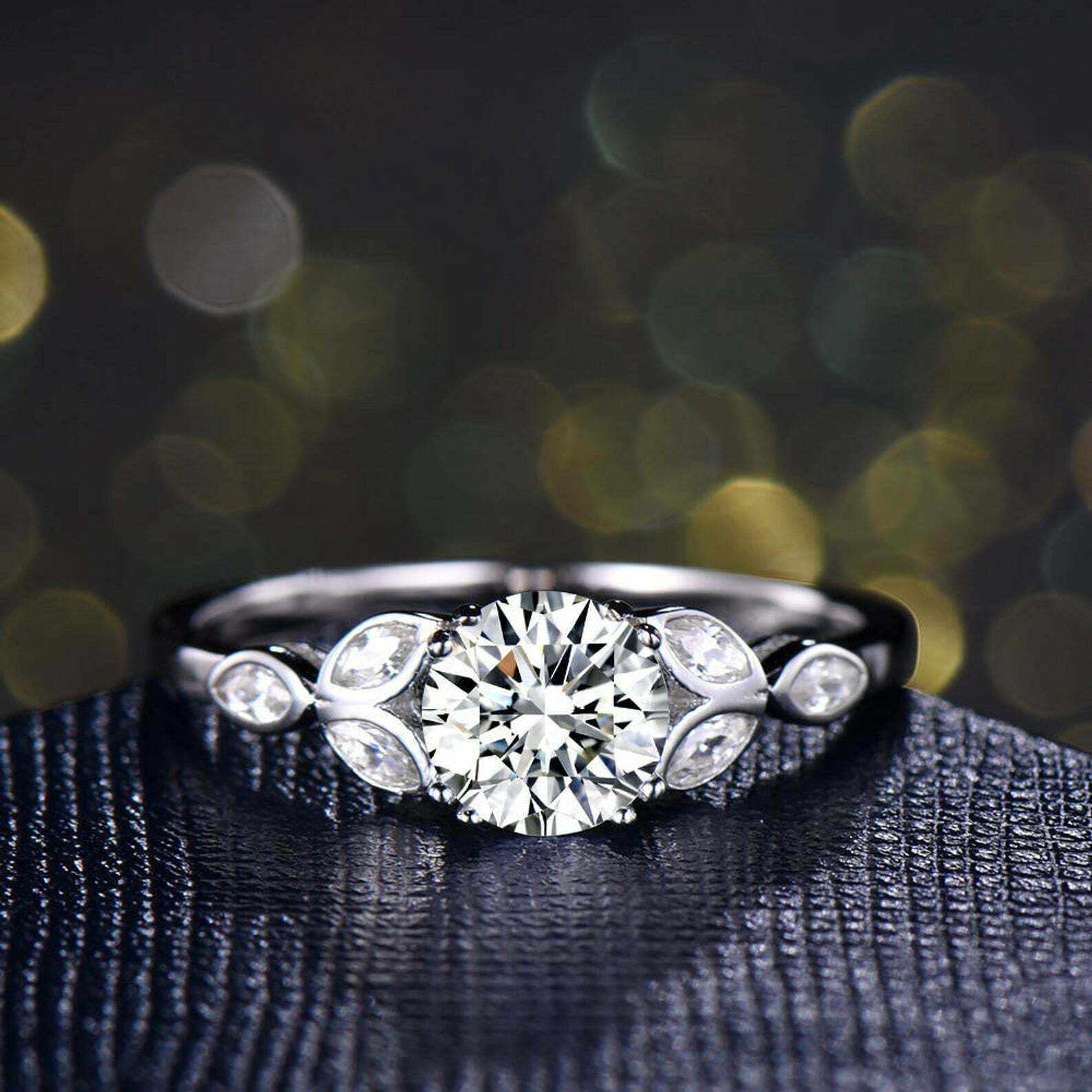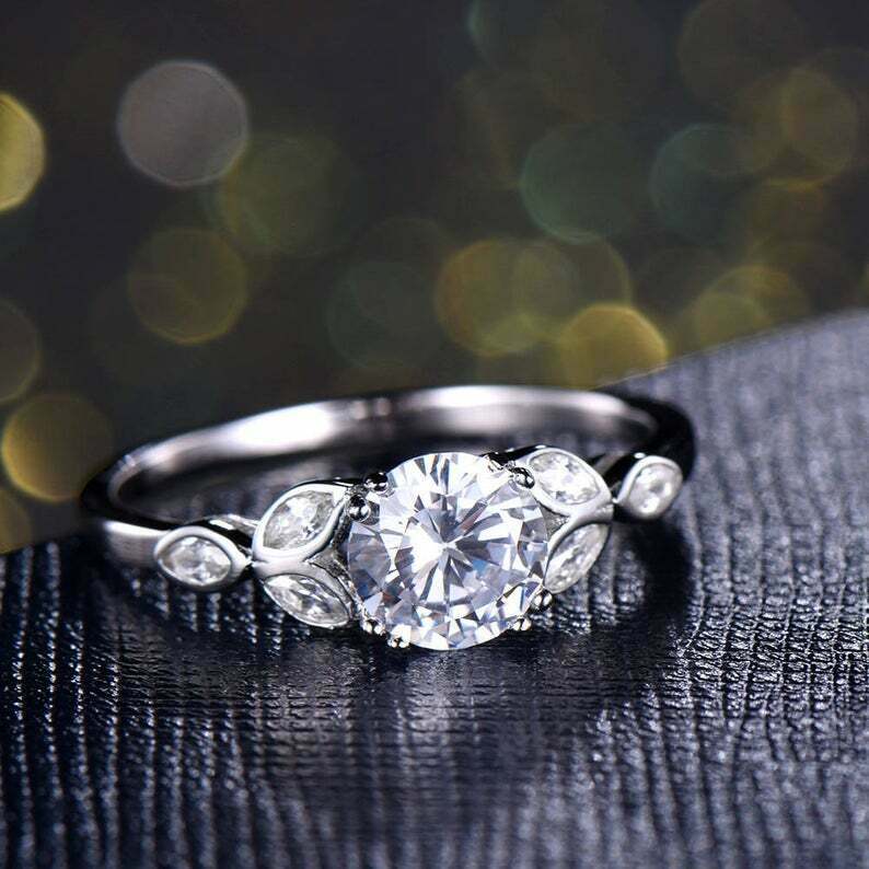 1.2ct Round Cut Diamond Engagement Ring Floral Leaf Solitaire 14k WhiteGold Over