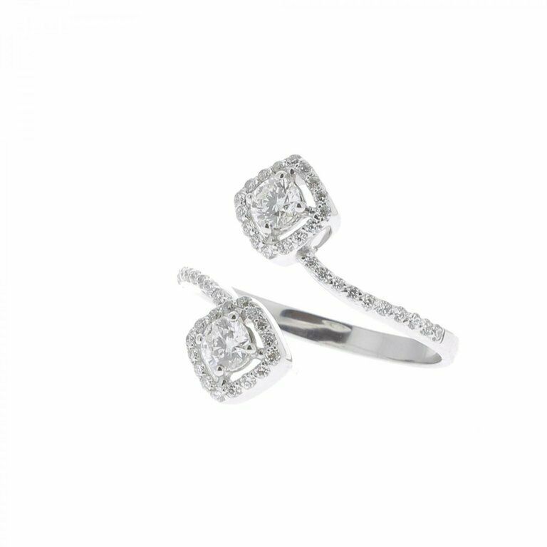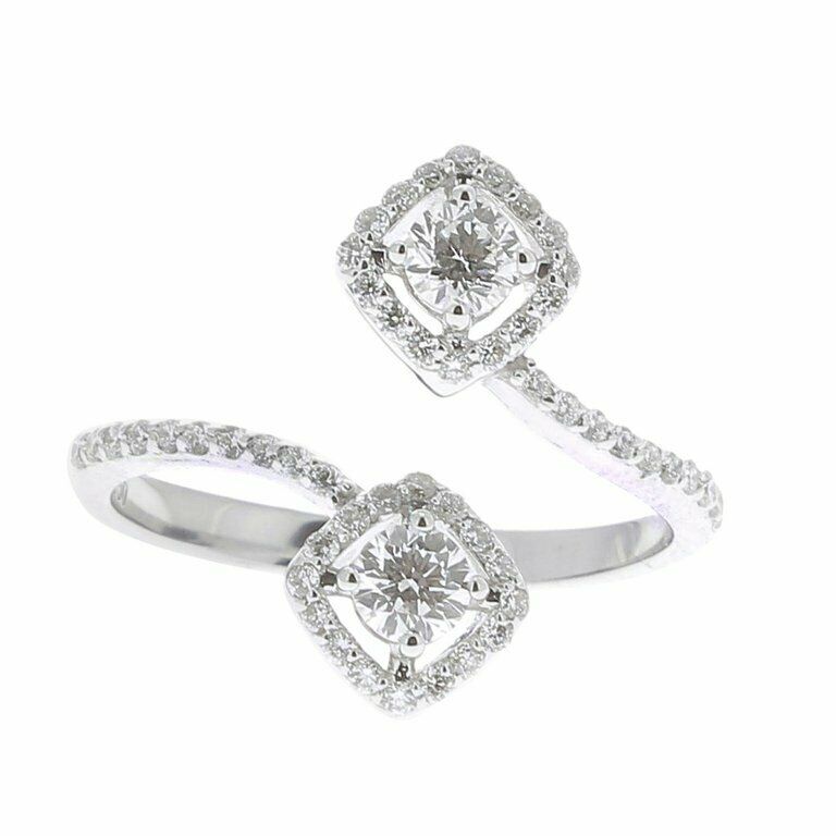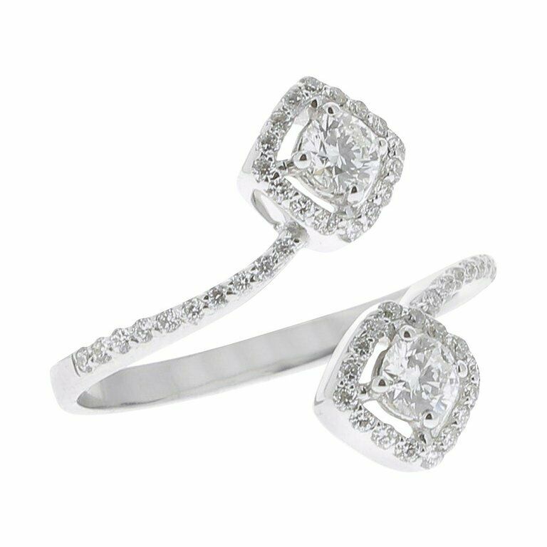 1.2ct Round Cut Diamond Engagement Ring Open Bypass Halo 14k White Gold Finish
