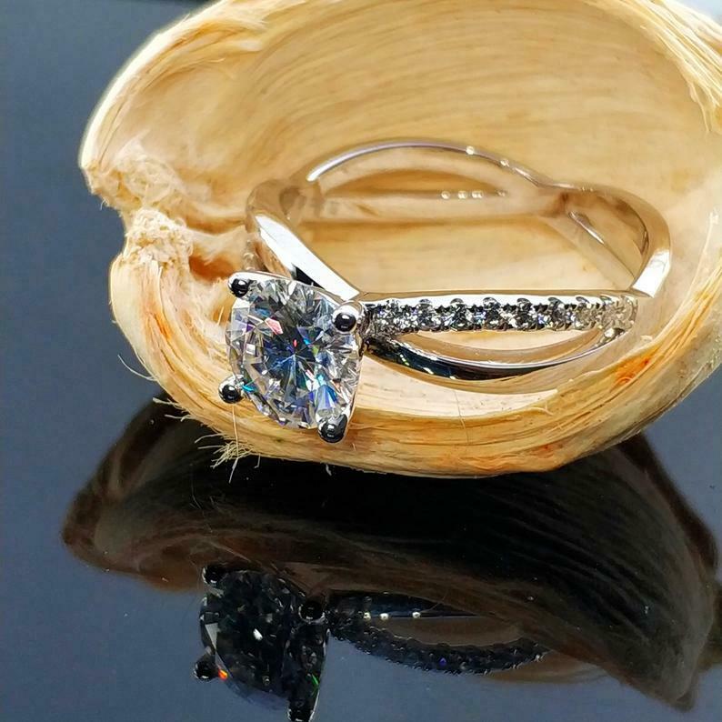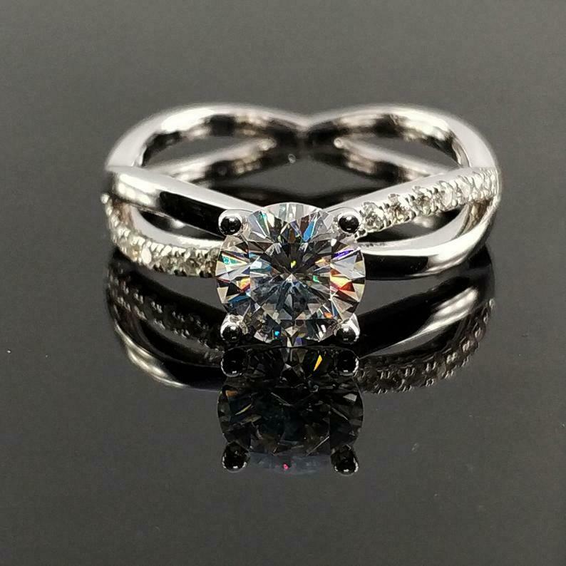 1.2ct Round Cut Diamond Engagement Ring Twist Split Shank 14k White Gold Finish