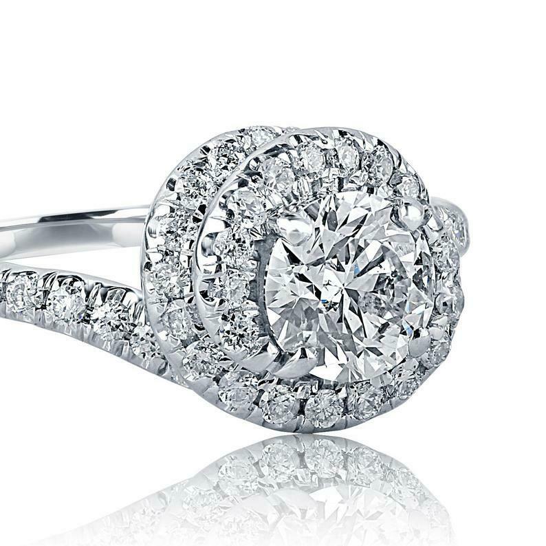 1.2ct Round Cut Diamond Engagement Ring Twist Swirl Halo 14k White Gold Finish