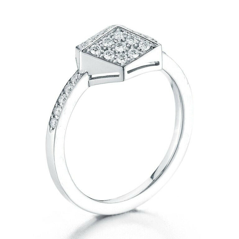 1.2ct Round Cut Diamond Engagement Ring Unique Cube Design 14k White Gold Finish