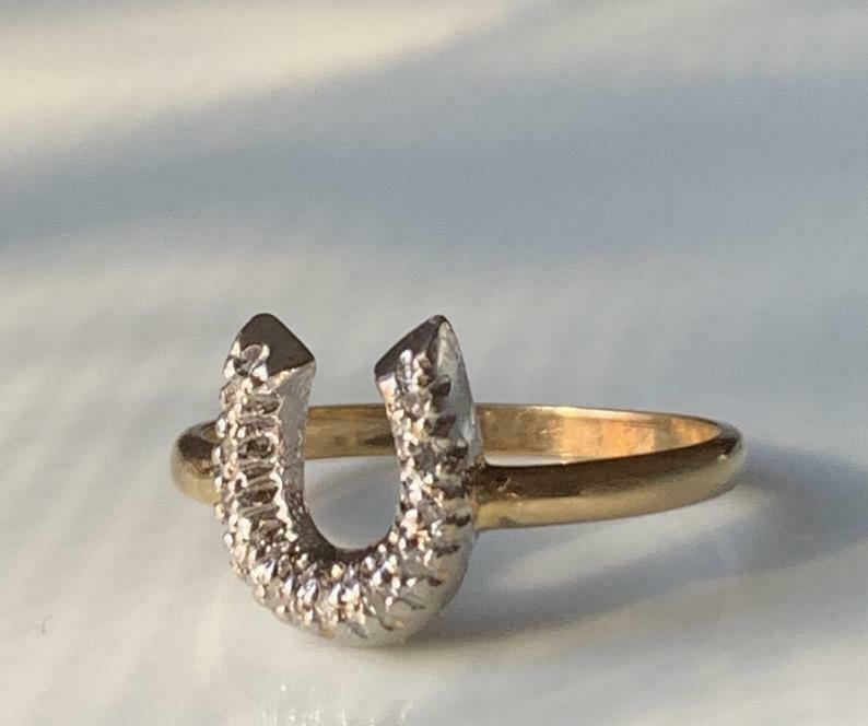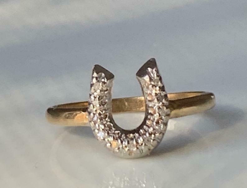 1.2ct Round Cut Diamond Horse Shoe Lucky Engagement Ring 14k Yellow Gold Finish