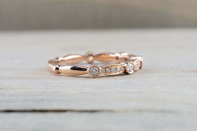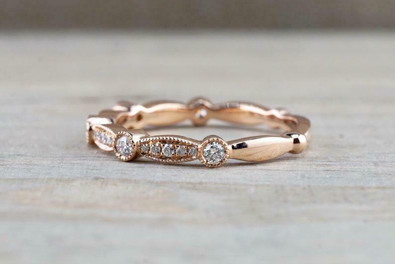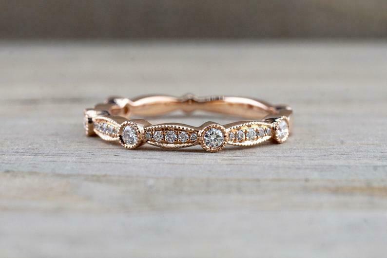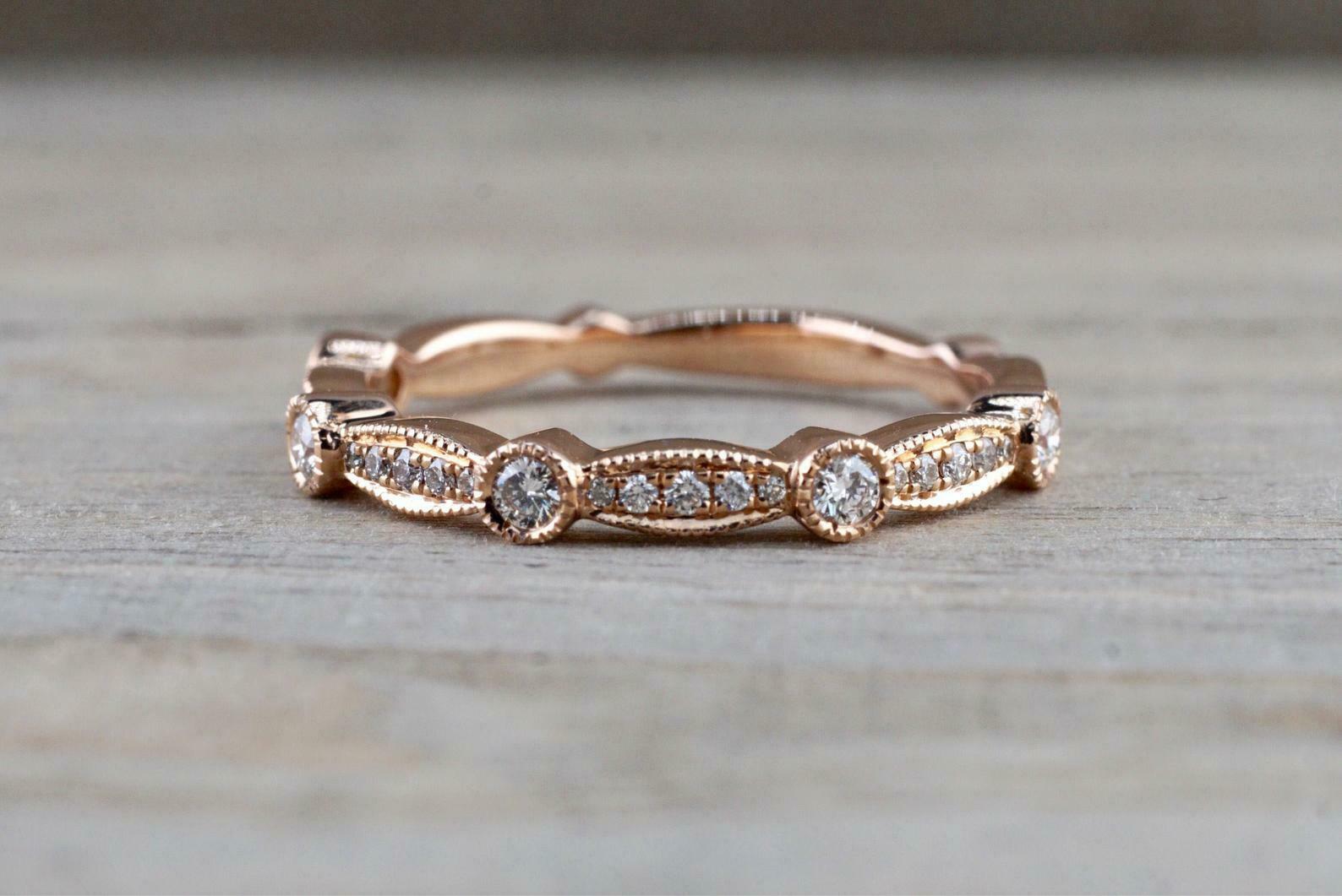 1.2ct Round Cut Diamond Milgrain Petite Wedding Band Ring 14k Rose Gold Finish