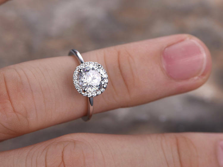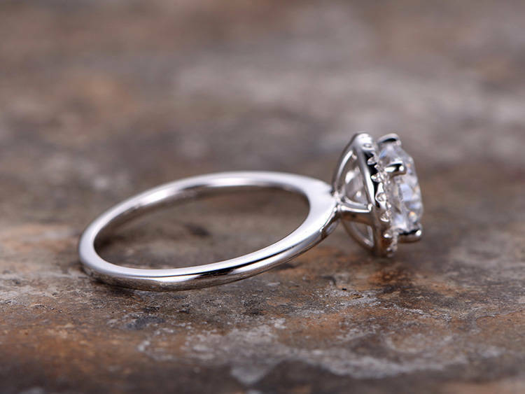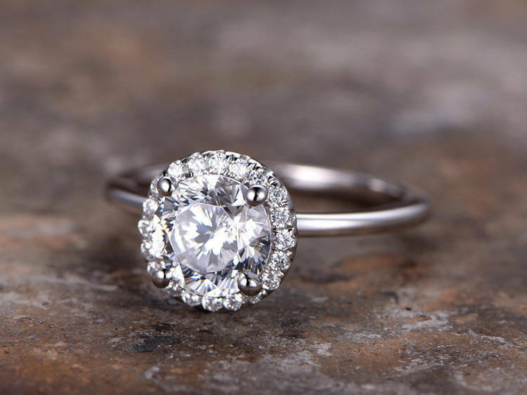 1.2ct Round Cut Diamond Solitaire Cluster Engagement Ring 14k White Gold Finish