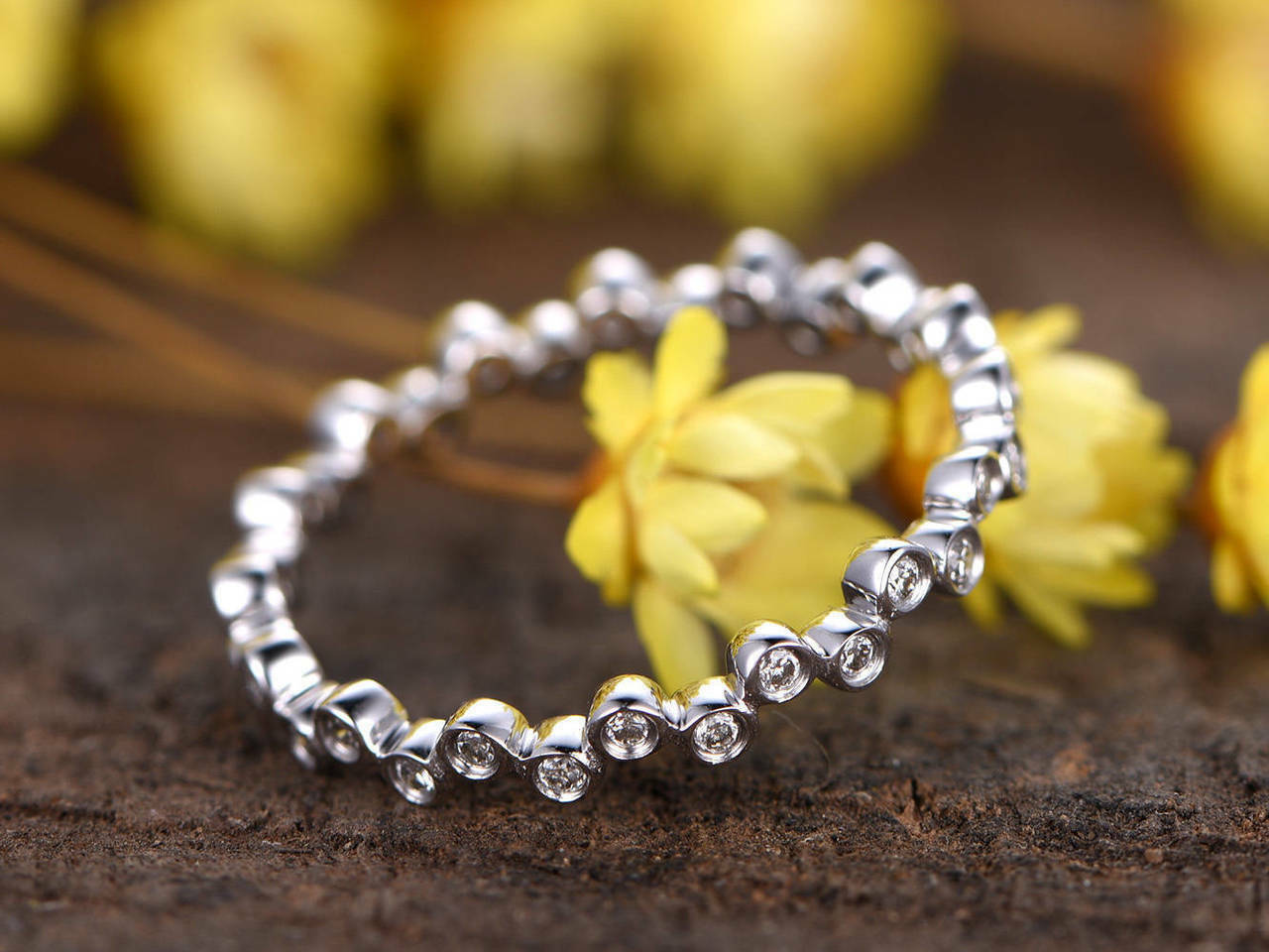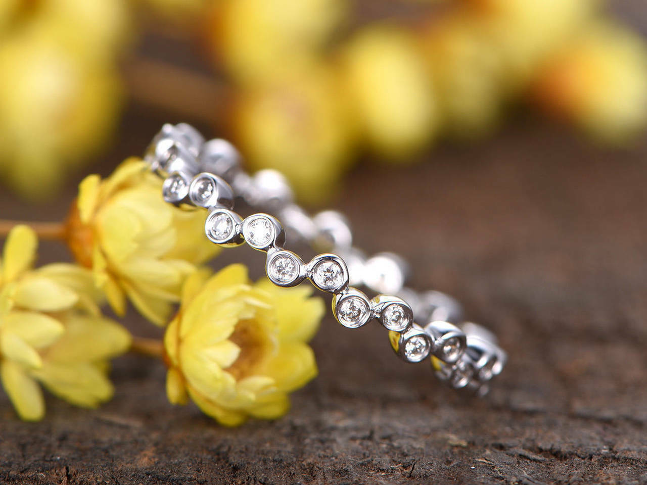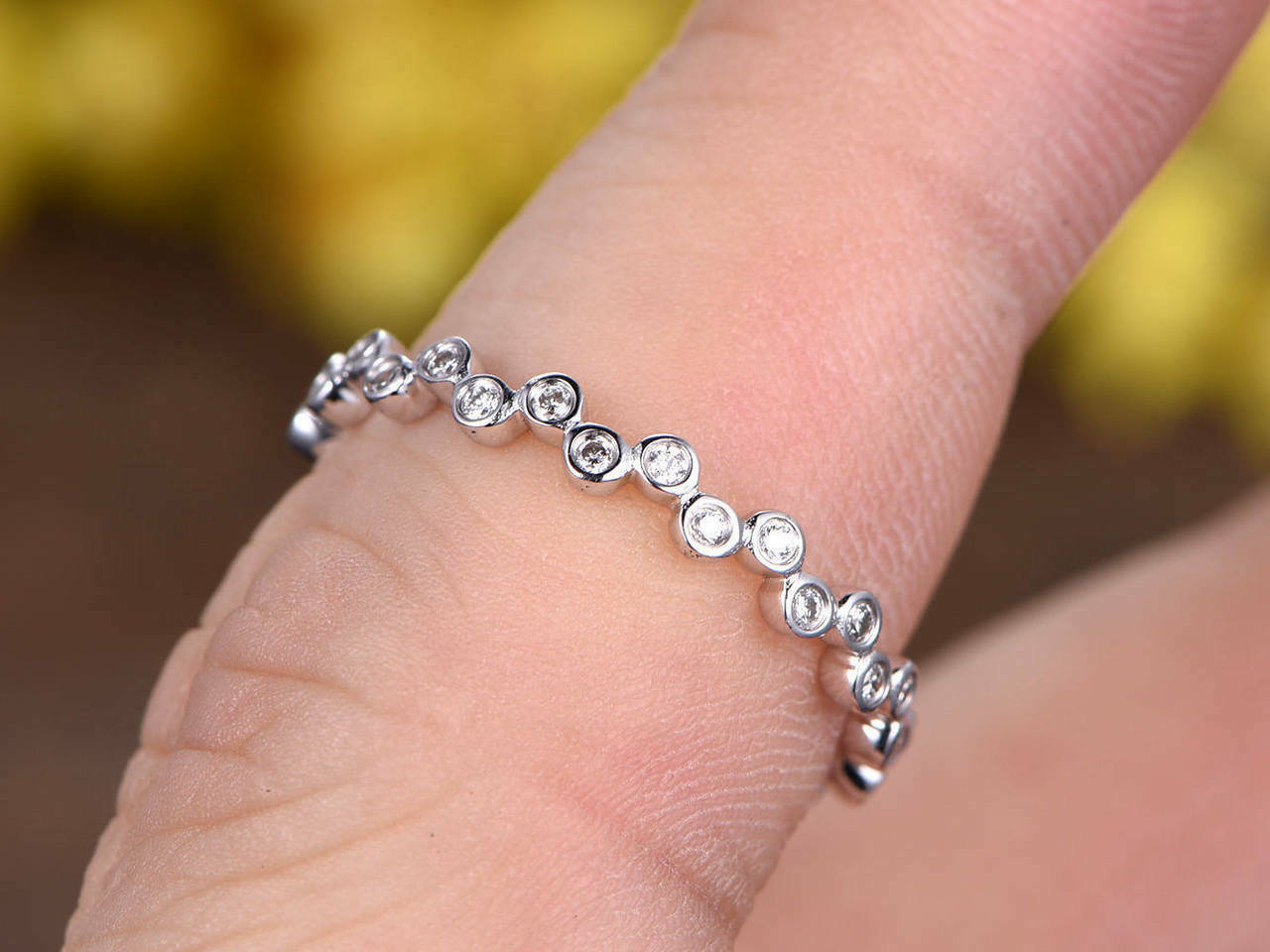 1.2ct Round Cut Diamond Wedding Band Bezel Set Full Eternity 14k White Gold Over