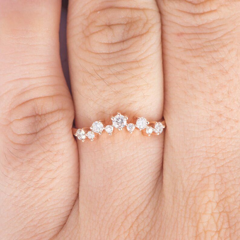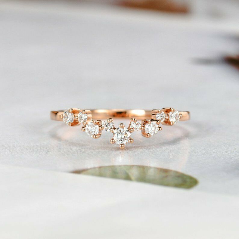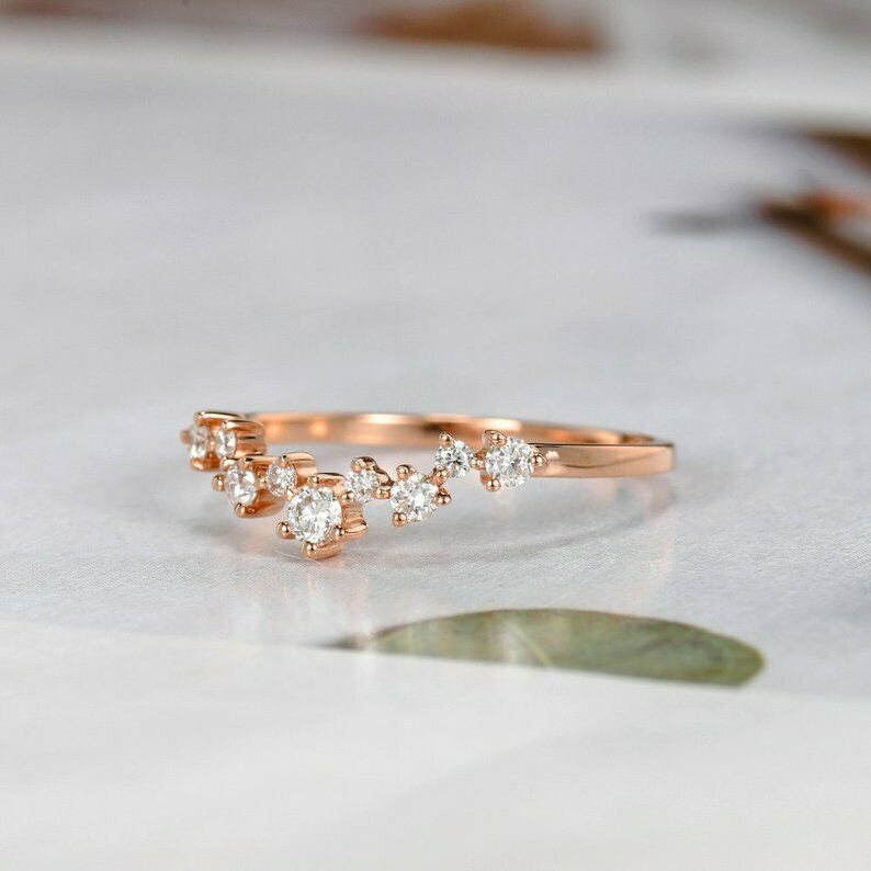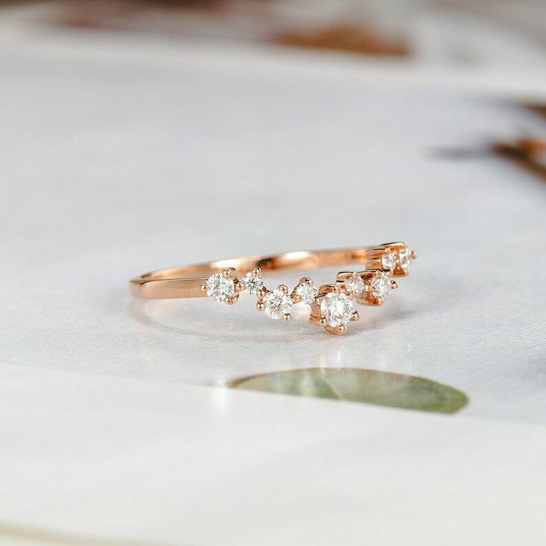 1.2ct Round Cut Diamond Wedding Band Curved Half Eternity 14k Rose Gold Finish