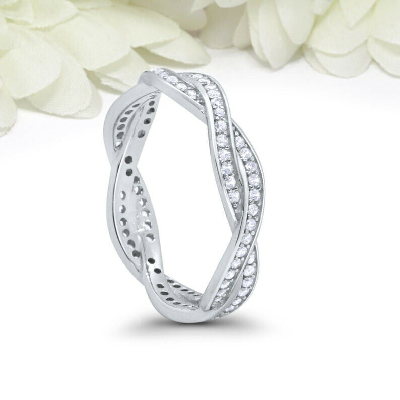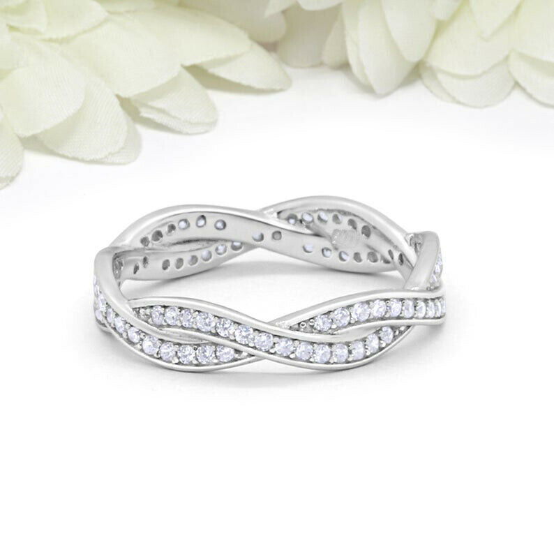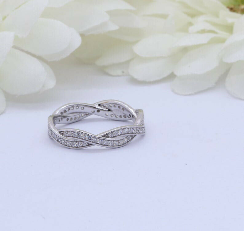 1.2ct Round Cut Diamond Wedding Band Infinity Twisted Braided 14k WhiteGold Over