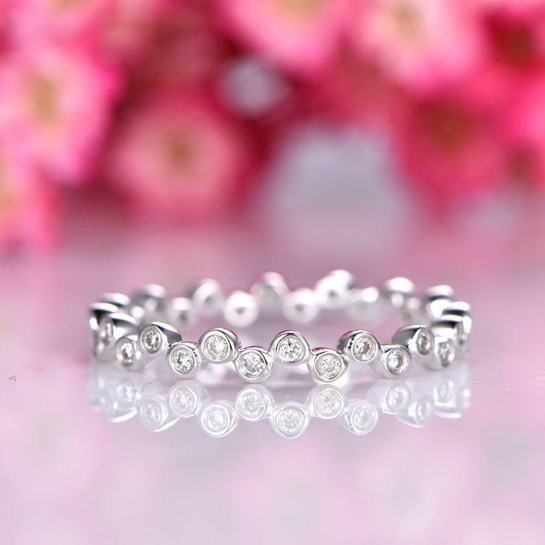 1.2ct Round Cut Diamond Wedding Ring Band Bezel Set Eternity 14k White Gold Over