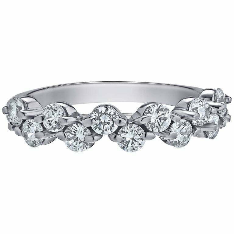 1.2ct Round Cut Diamond Wedding Ring Band Half Eternity 14k White Gold Finish