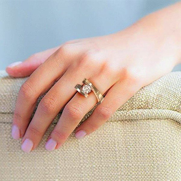 1.2ct Round Cut VVS1 Diamond Engagement Ring 14k Yellow Gold Finish Bypass Women