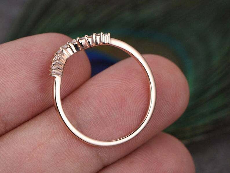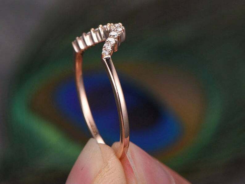 1.2ct Round Cut VVS1D Diamond Wedding Band Stackable Curved 14k Rose Gold Finish