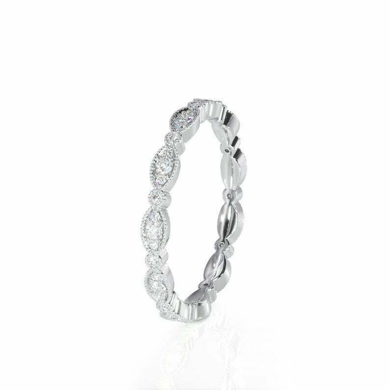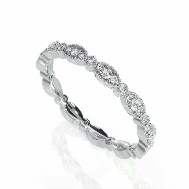 1.2ct Round Diamond Wedding Band Milgrain Stackable Eternity 18k White Gold Over