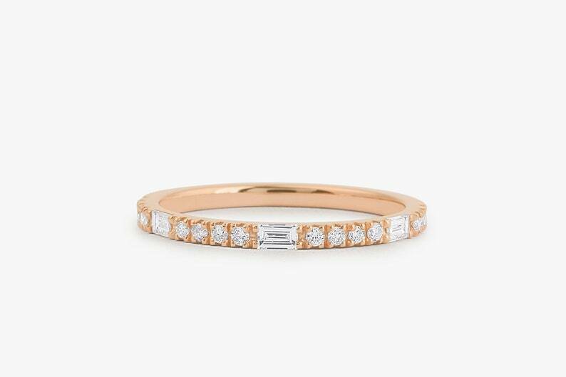 1.2ct Wedding Ring Band Baguette Cut Diamond Full Eternity 14k Rose Gold Finish