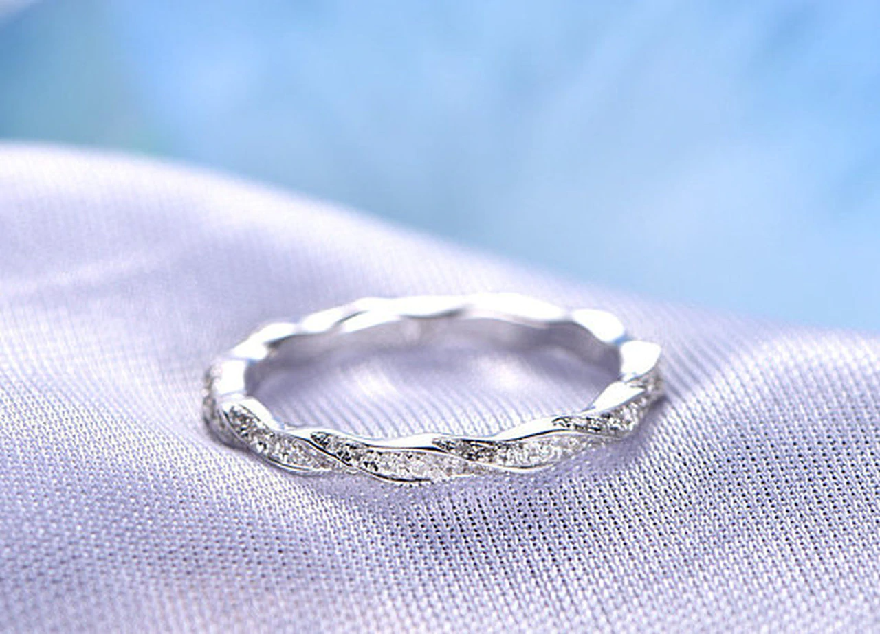 1.2ct Wedding Ring Band Round Cut Diamond Full Eternity 14k White Gold Finish