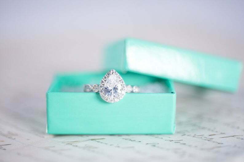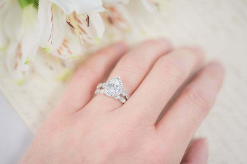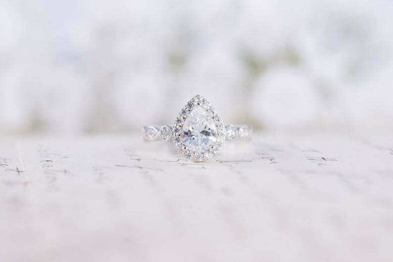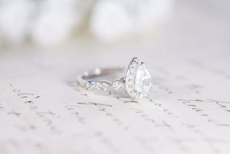 1.33ct Pear Cut Diamond Engagement Ring Halo Vintage Style 14k White Gold Finish