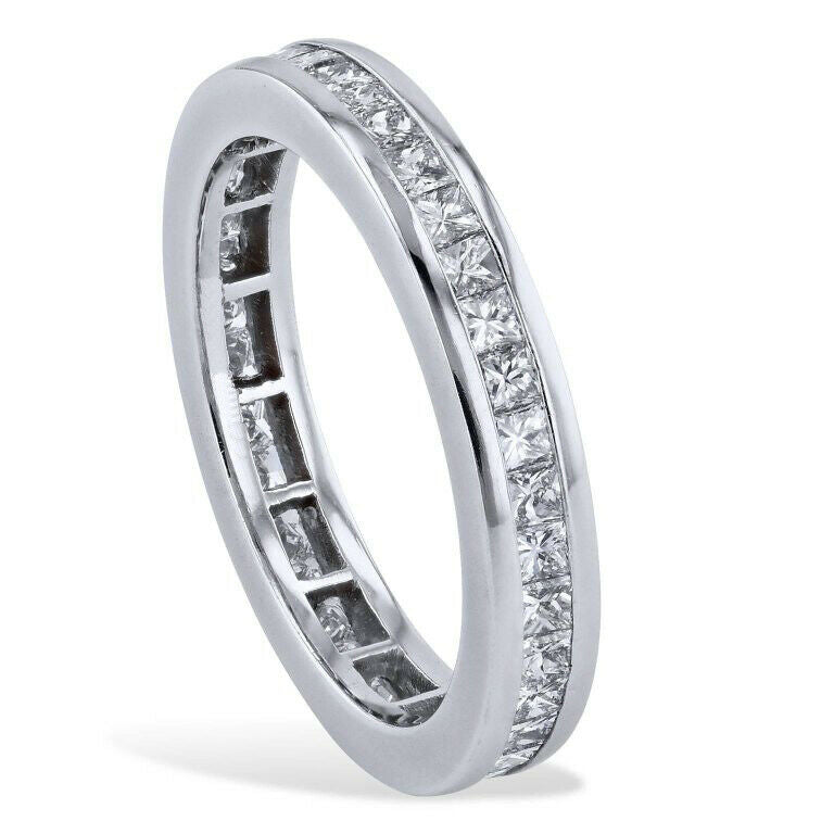 1.33ct Princess Cut Diamond Wedding Ring Band Channel Set 14k White Gold Finish