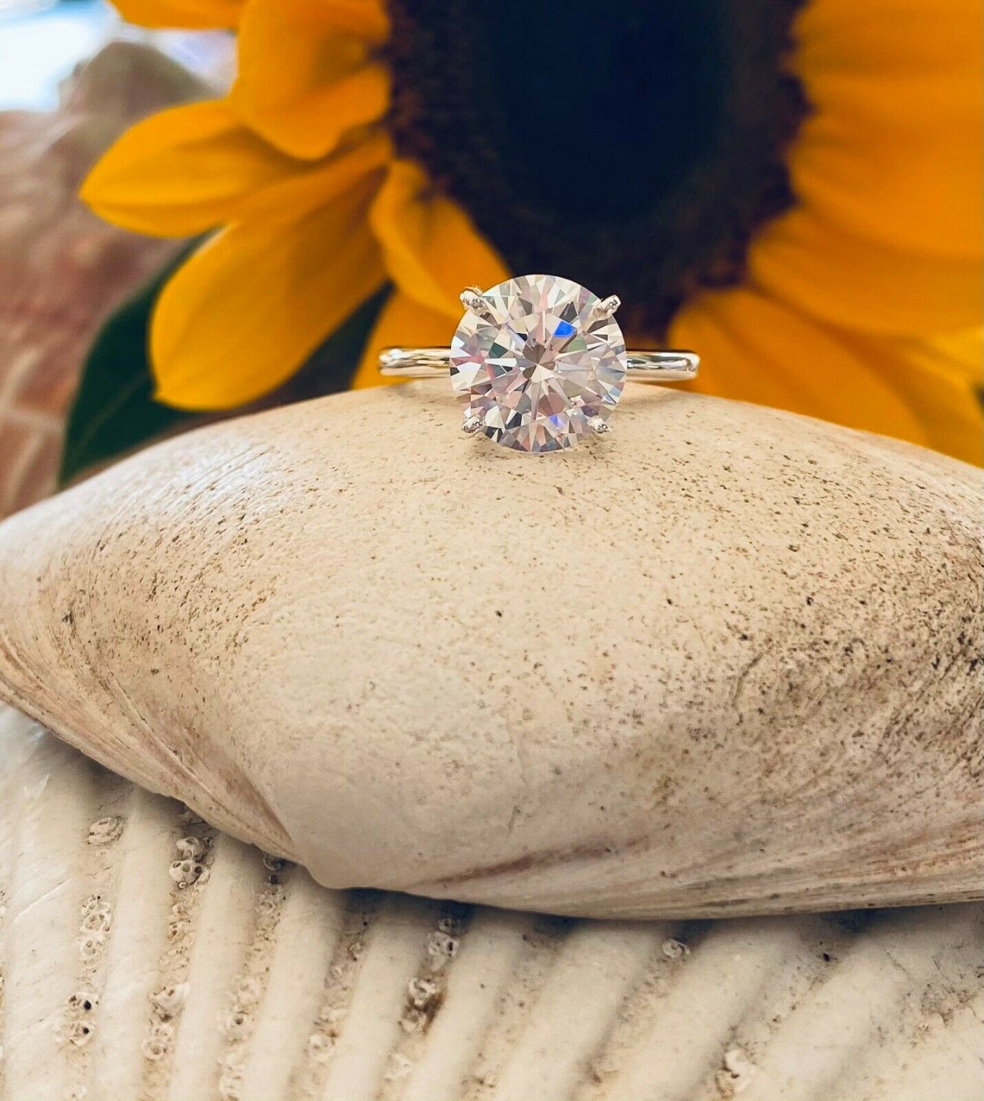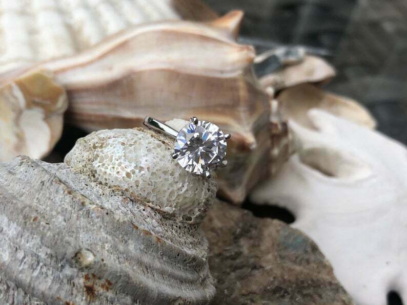 1.34ct Engagement Ring Round Cut Diamond 4 Prong Solitaire 14k White Gold Finish