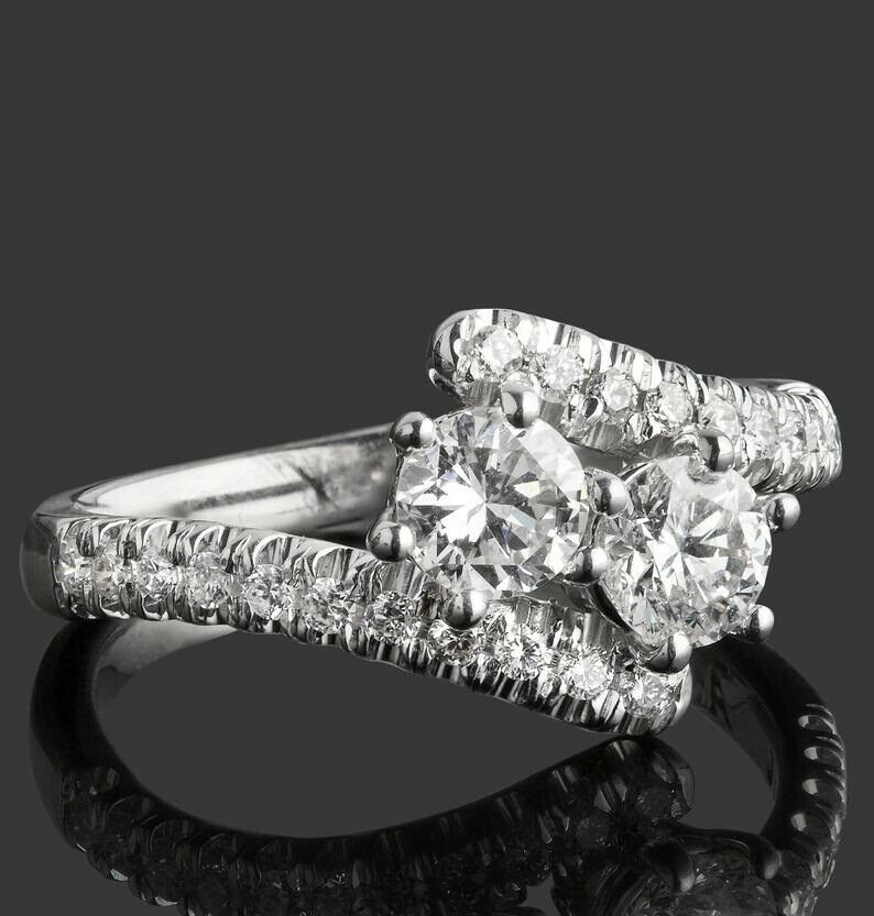 1.35ct Round Cut Diamond Engagement Ring Two Stone Bypass 14k White Gold Finish