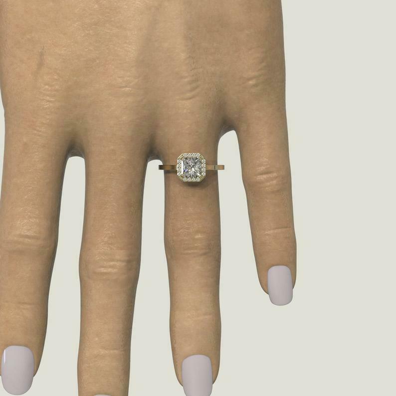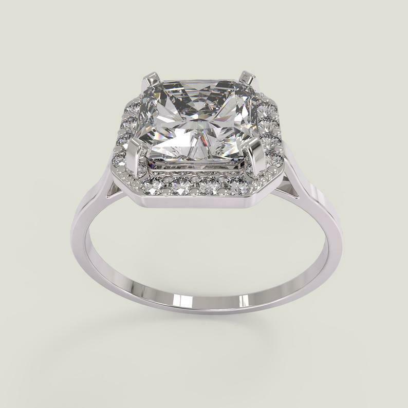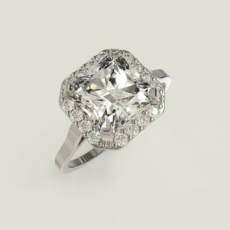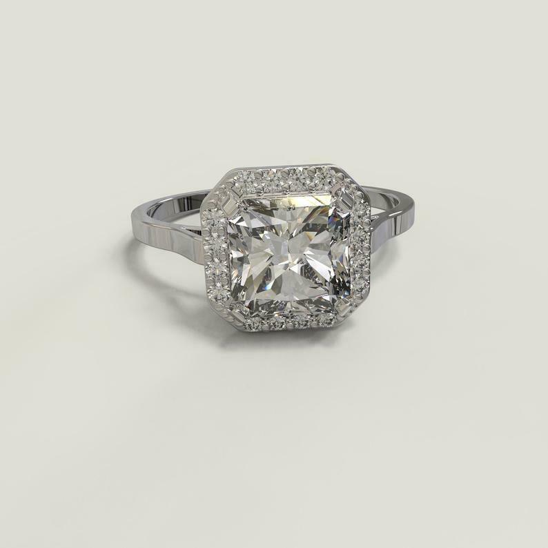 1.3ct Asscher Cut Diamond Engagement Ring Round Accent Halo 14k White Gold Finish