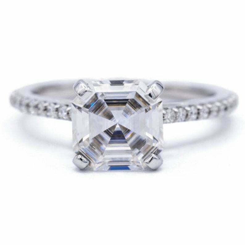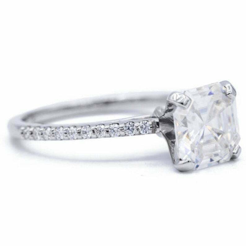 1.3ct Asscher Cut Diamond Engagement Ring Round Accent Solitaire 14k White Gold Over