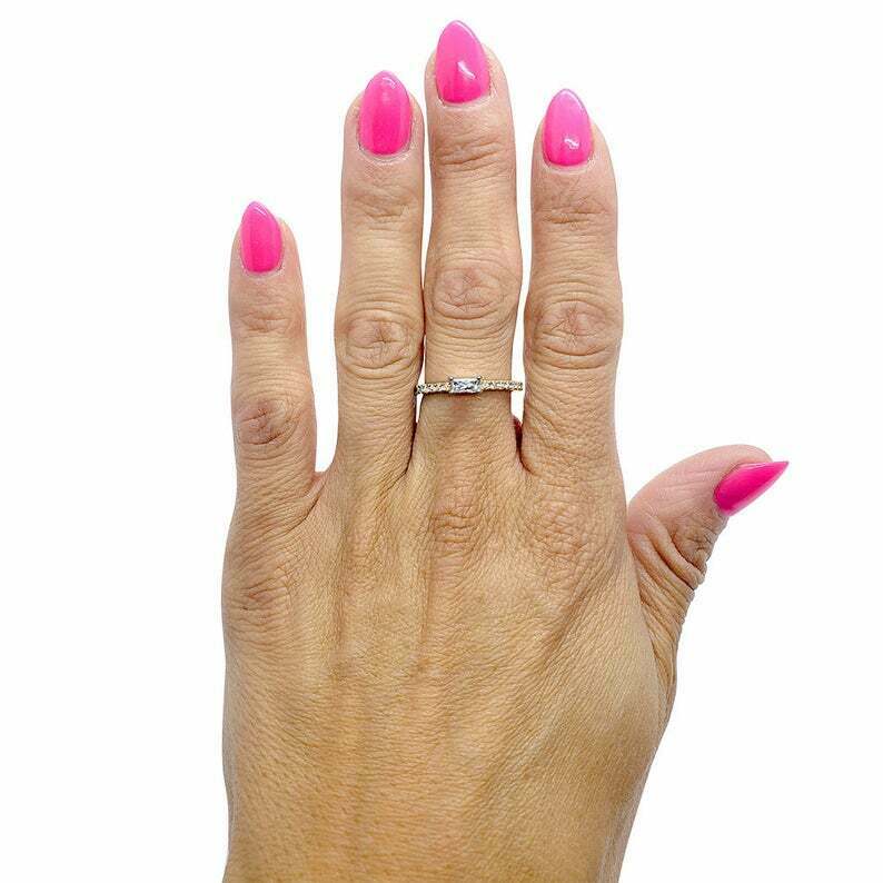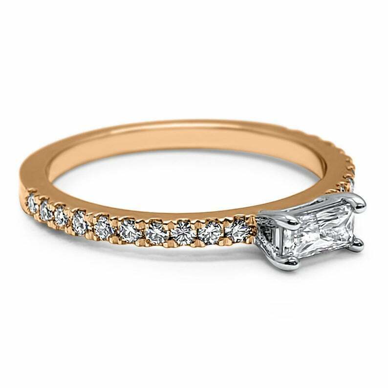 1.3ct Baguette Cut Diamond Engagement Ring Accents Solitaire 14k Rose Gold Over