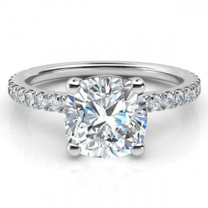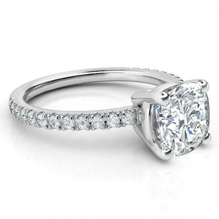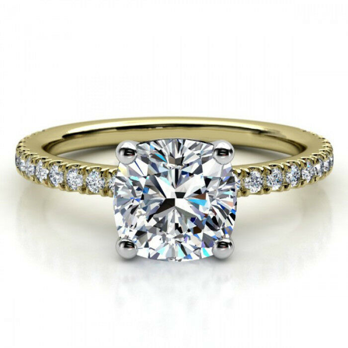 1.3ct Cushion Cut Diamond Accents Solitaire Engagement Ring 14k Gold Finish New