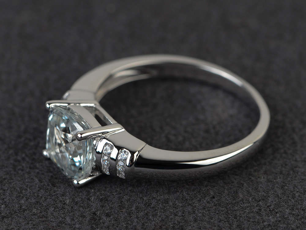 1.3ct Cushion Cut Diamond Engagement Ring 14k White Gold Finish Accent Solitaire