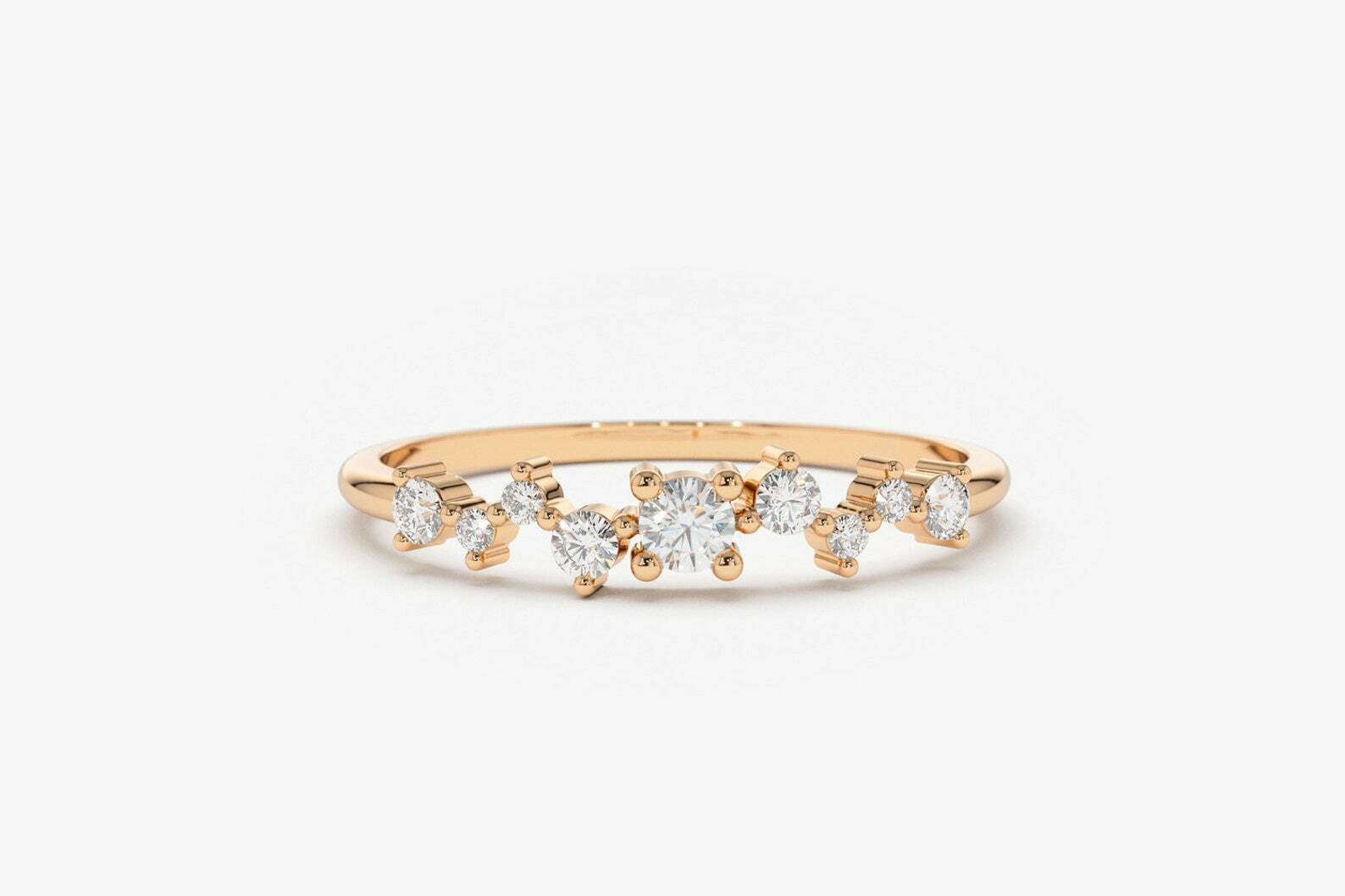 1.3ct Engagement Ring Round Cut Diamond Cluster Minimalist 14k Rose Gold Finish