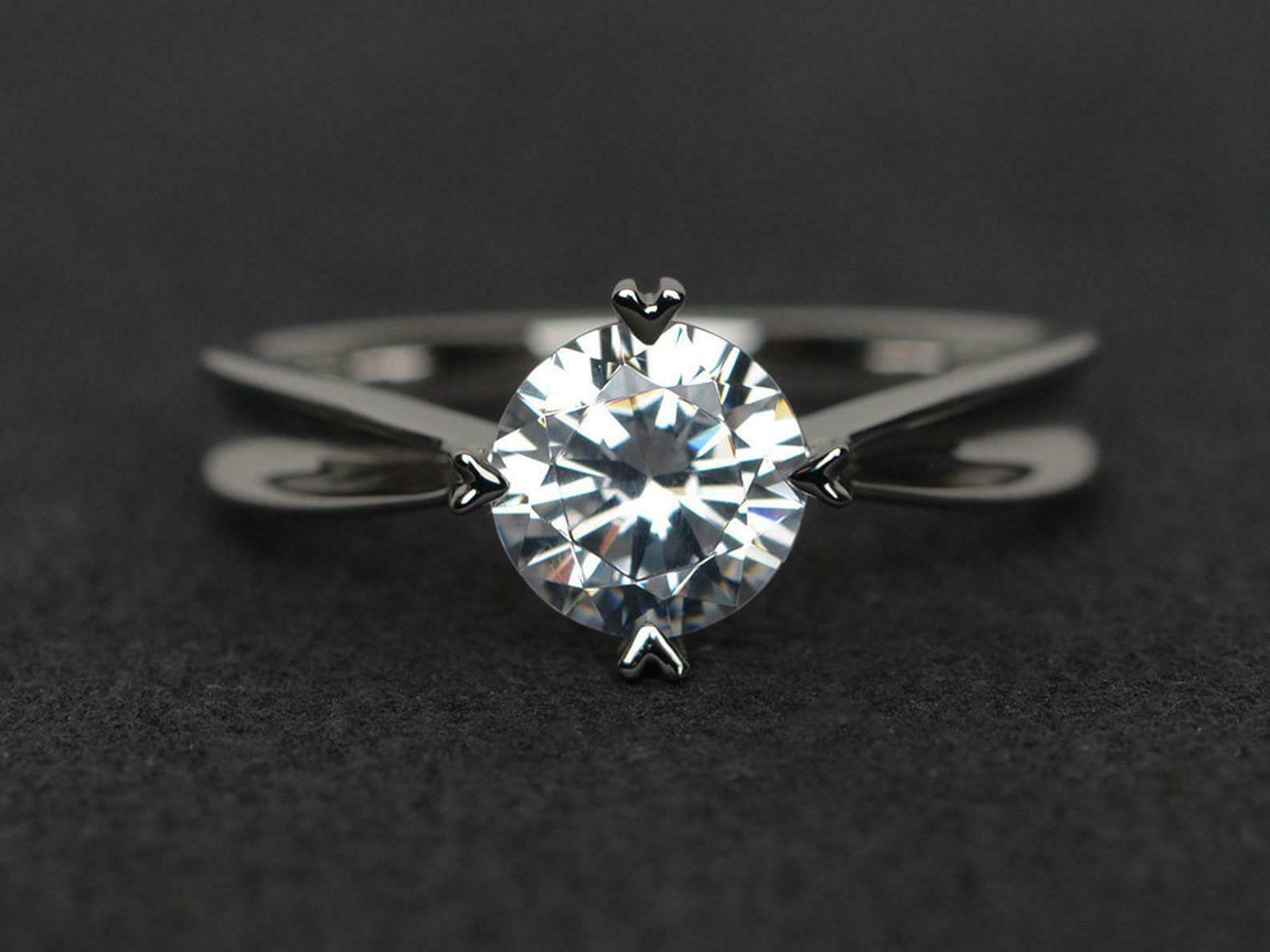 1.3ct Engagement Ring Round Cut Diamond Solitaire Design 14k White Gold Finish