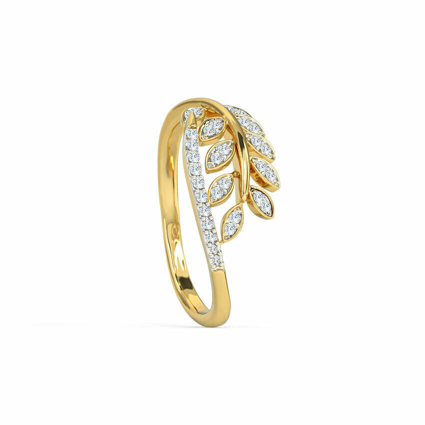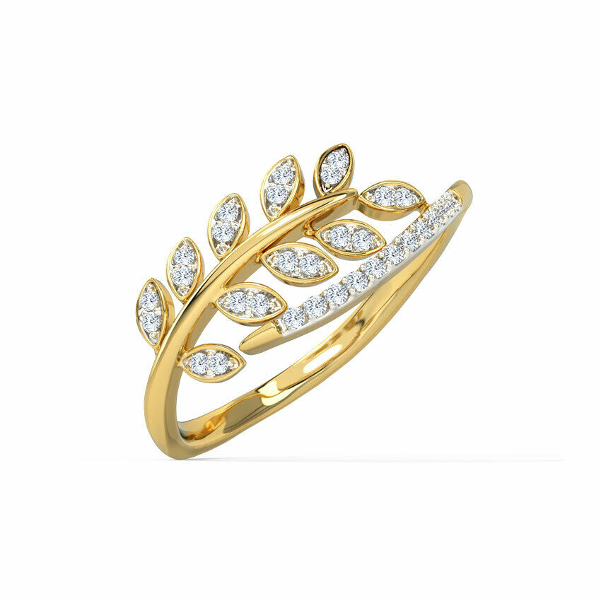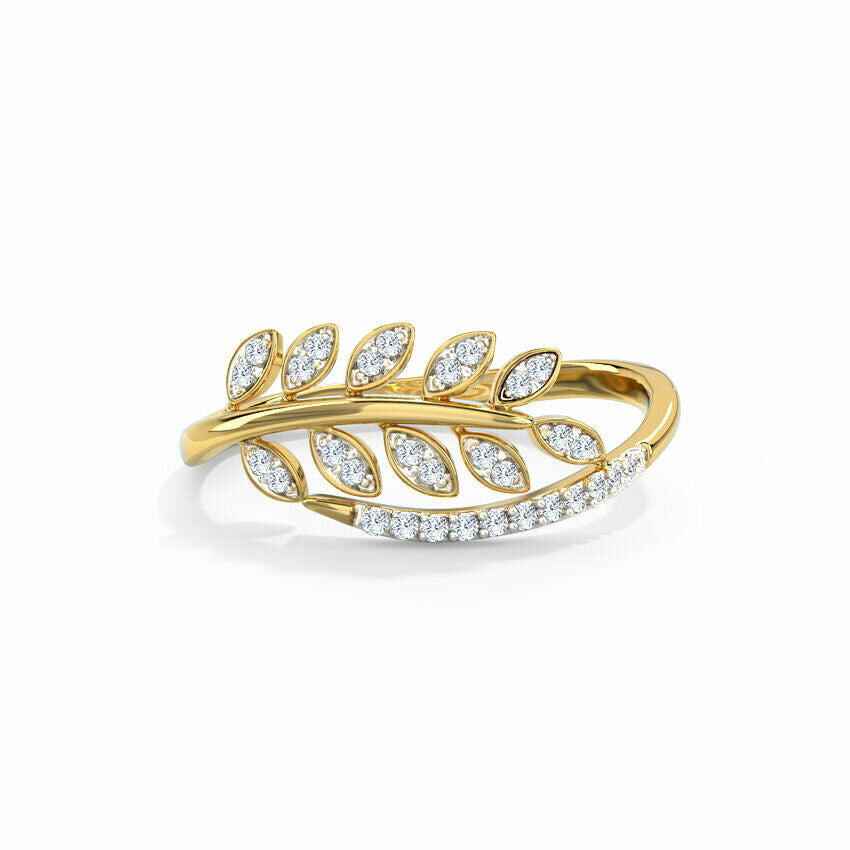 1.3ct Engagement Ring Round Diamond Leaf Design Cocktail 14k Yellow Gold Finish