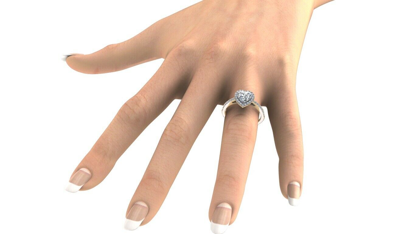 1.3ct Heart Cut Diamond Accent Halo Solitaire Engagement Ring 14k WhiteGold Over