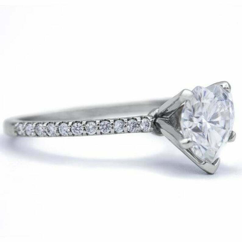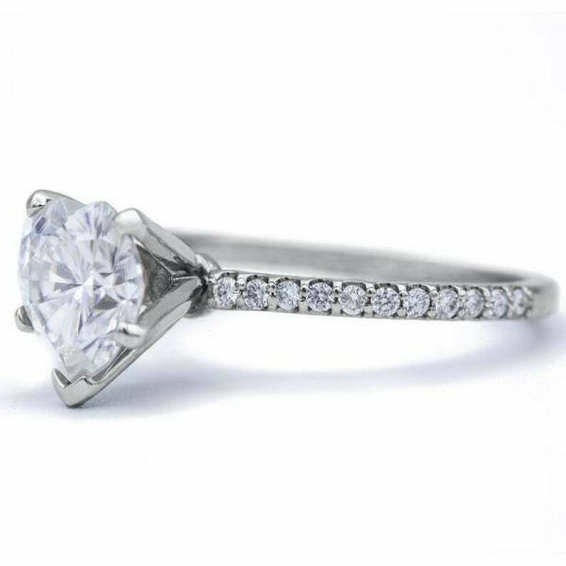 1.3ct Heart Diamond Engagement Ring Round Accent Solitaire 14k White Gold Finish
