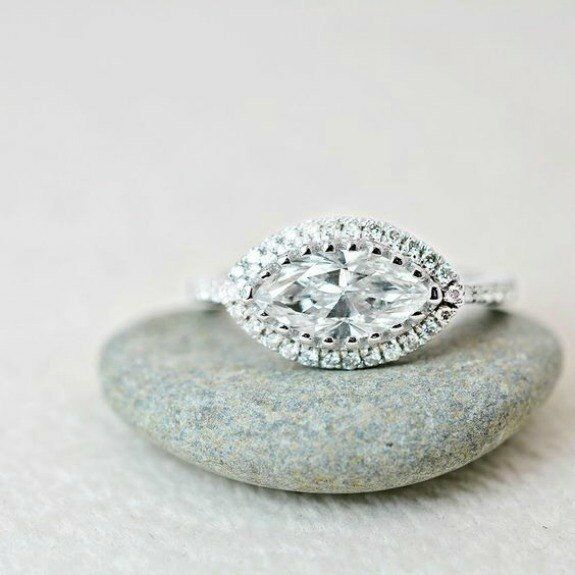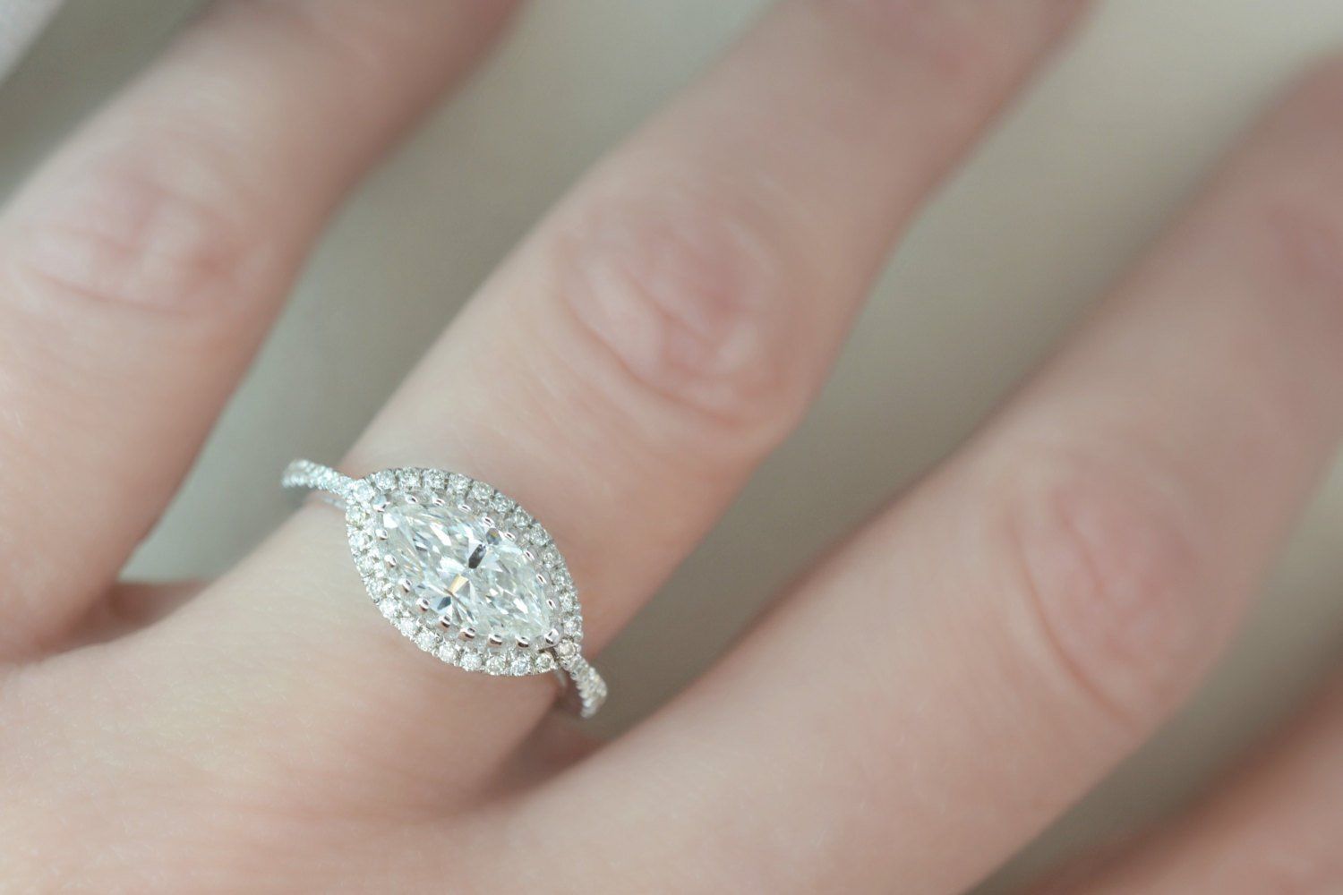1.3ct Marquise Cut Horizontal Diamond Halo Engagement Ring 14k White Gold Finish