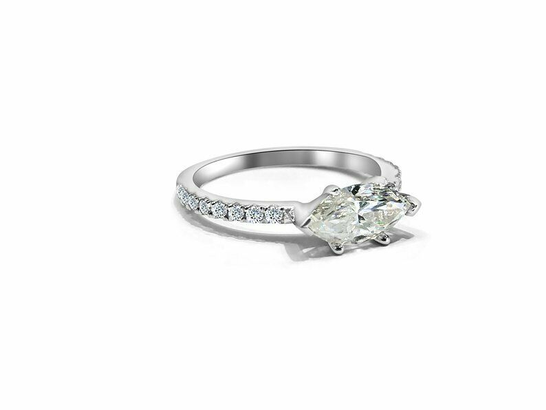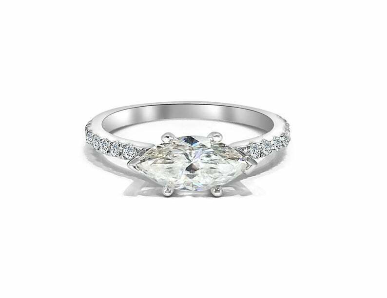 1.3ct Marquise Cut Diamond Engagement Ring East West Solitaire 14k White Gold Finish
