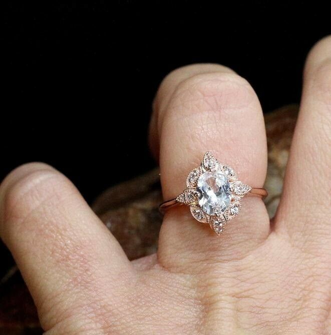 1.3ct Oval Cut Diamond Engagement Ring Milgrain Solitaire 14k Rose Gold Finish