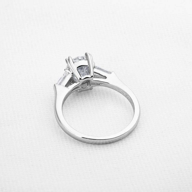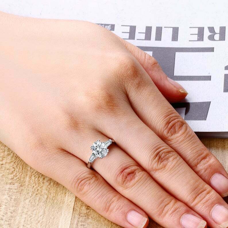 1.3ct Oval Diamond Engagement Ring Baguette Accent Trilogy 14k White Gold Finish