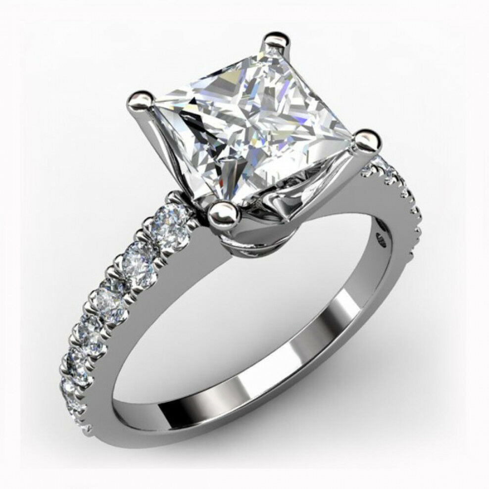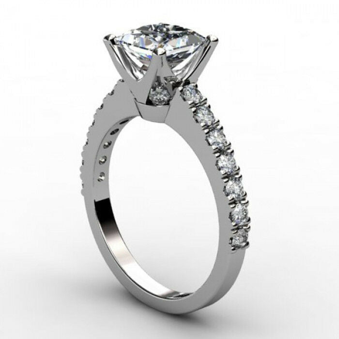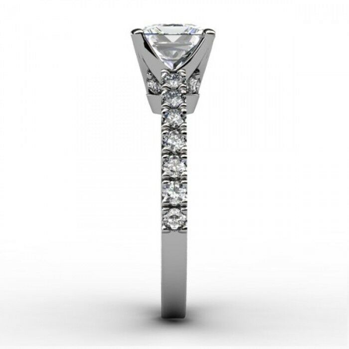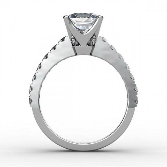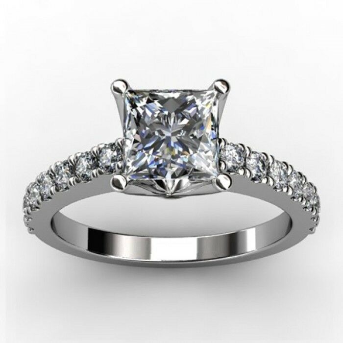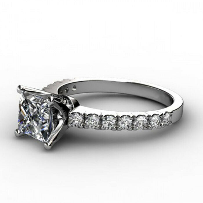 1.3ct Princess Cut Diamond Accent Band Engagement Ring 14k White Gold Finish