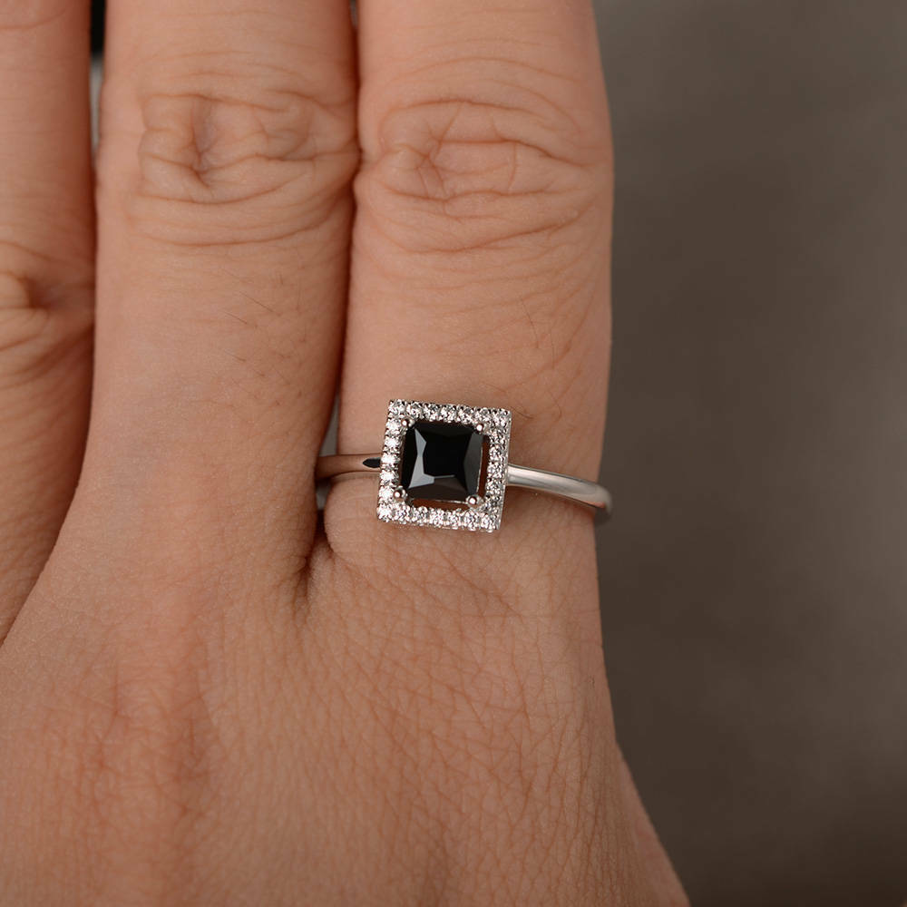 1.3ct Princess Cut Diamond Engagement Ring 14k White Gold Finish Halo Solitaire