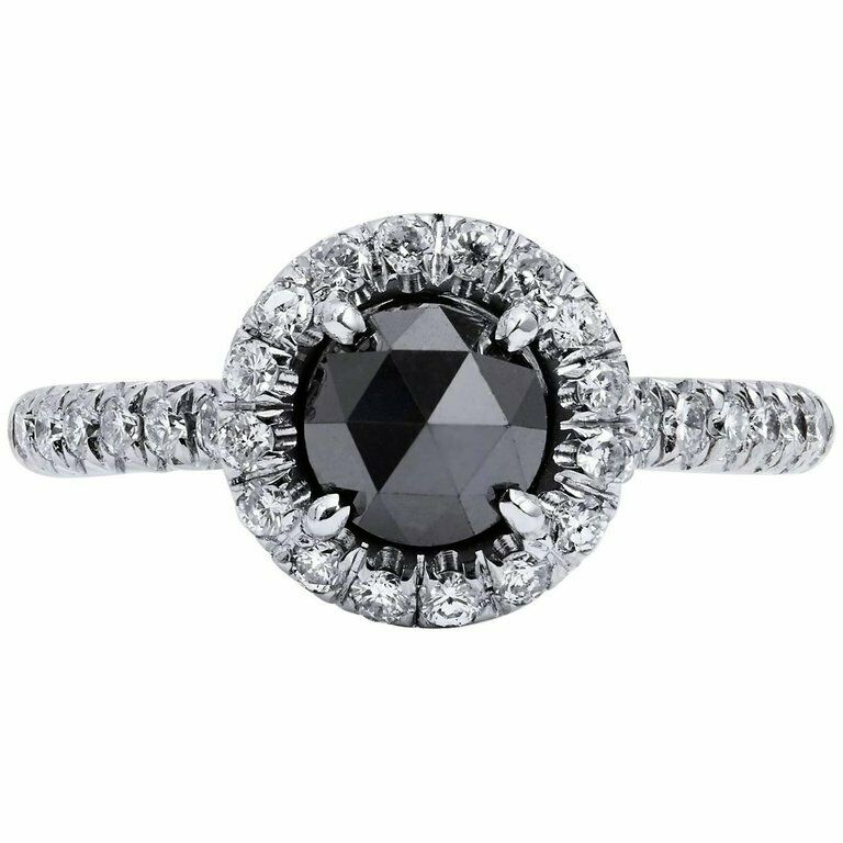 1.3ct Round Cut Black Diamond Engagement Ring Halo Solitaire 14k White Gold Over