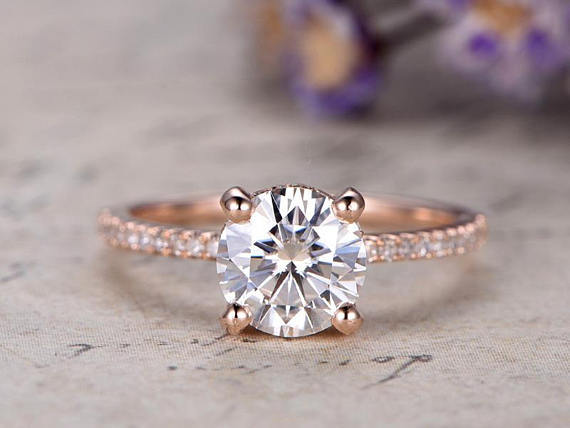 1.3ct Round Cut Diamond Engagement Ring 14k Rose Gold Finish 4 Prong Set Wedding