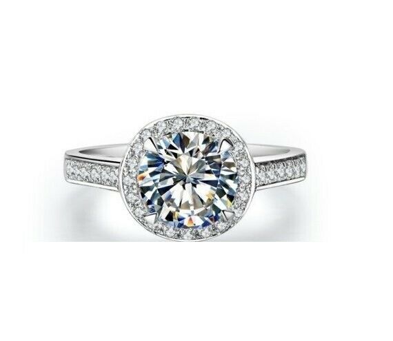 1.3ct Round Cut Diamond Engagement Ring 14k White Gold Finish Halo Solitaire