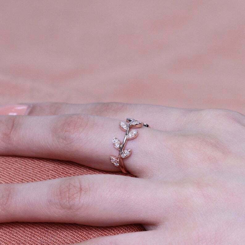 1.3ct Round Cut Diamond Leaf Half Eternity Wedding Band 14k Rose Gold Finish