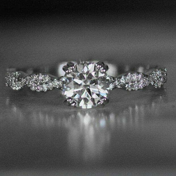 1.3ct Round Cut Diamond Twist Accents Engagement Ring 14k White Gold Finish