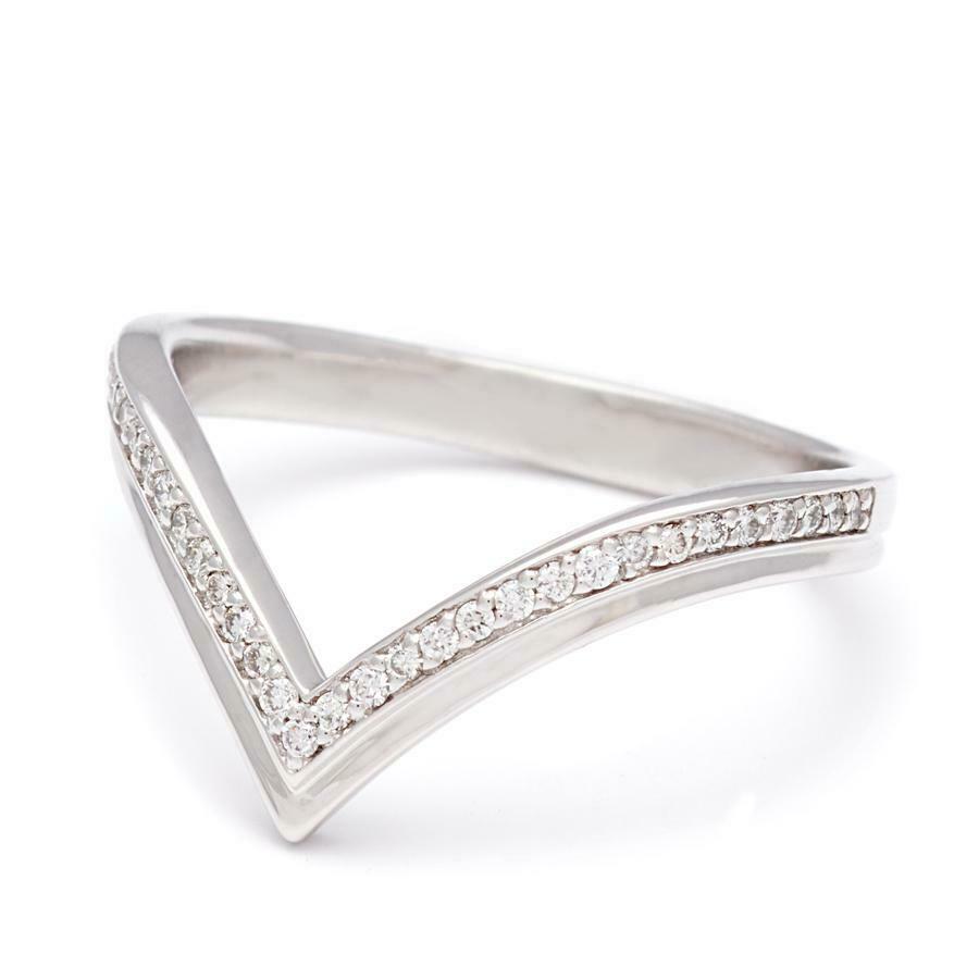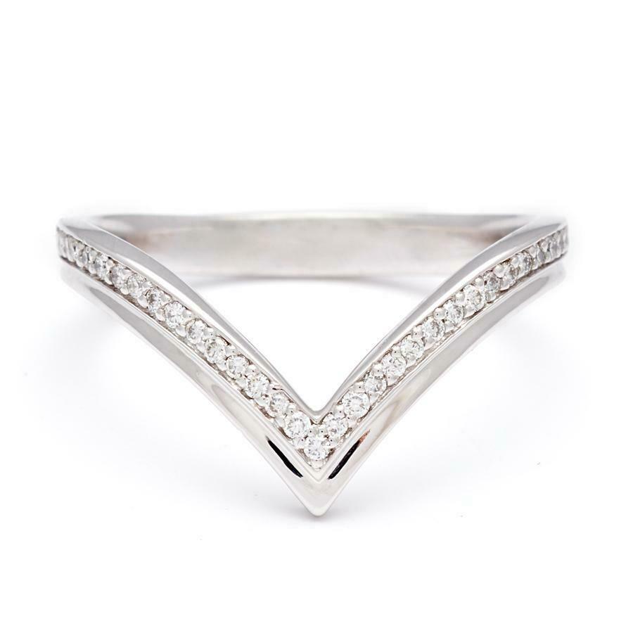 1.3ct Round Cut Diamond Wedding Band 14k WhiteGold Finish V Shaped Petite Curved