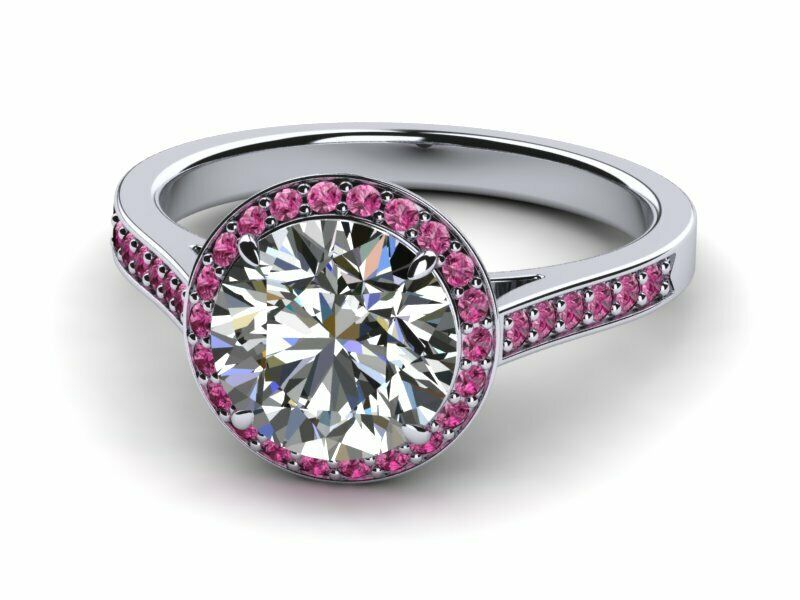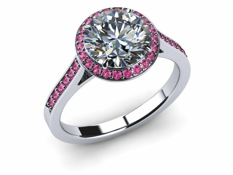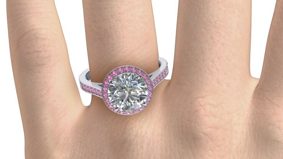 1.3ct Round Cut Pink Sapphire Accents Halo Engagement Ring 14k White Gold Finish
